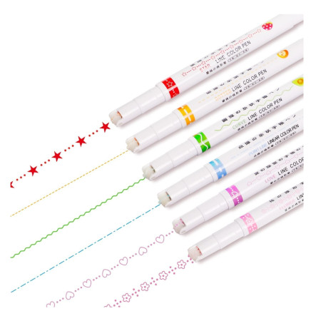 • Set of six roller-style highlighters with smooth decorative line patterns.