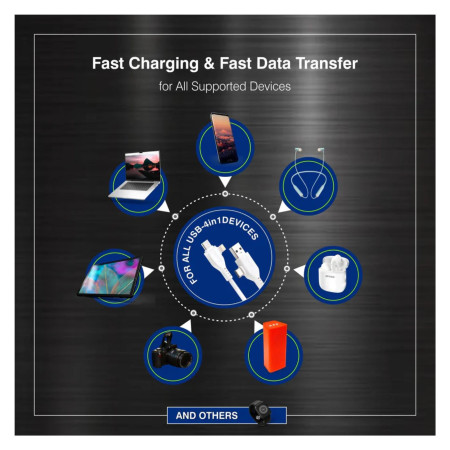 • Includes USB-A, Type-C, Micro, and Lightning connectors.