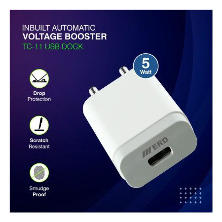 ERD USB-A Mobile Charger Adapter - 5 W (White) TC-11