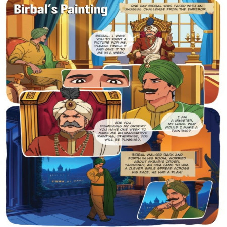 About the Book OUTSMARTING THE COURT AND WINNING HEARTS—JOIN BIRBAL ON HIS WITTIEST ADVENTURES WITH EMPEROR AKBAR. Akbar may be known for his wise governance and scholarly pursuits, but it’s stories of Birbal’s quick wit and sharp intellect that bring his legendary court back to life these many centuries later. This vibrant comic knits together 15 laugh-out-loud yet thought-provoking tales from the Mughal court. Watch Birbal’s quick-thinking in action—whether it is teaching Akbar a lesson with a pot of khichdi hanging far from the fire or outsmarting a thief in front of the entire court. Alongside the trickery and cleverness, these are also tales of justice and heartwarming moments of friendship, brimming with the warm camaraderie between an emperor and his trusted advisor. A delightful treat for readers of all ages! About the Series These contemporary graphic narratives breathe new life into the epics and classics, bringing them alive in full colour with compelling visuals and a fresh format. A must-read for comic book enthusiasts and lovers of good storytelling.